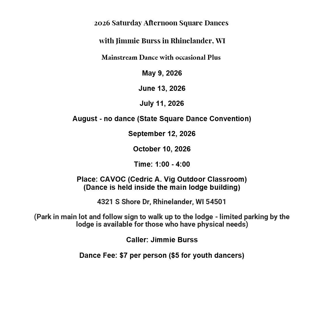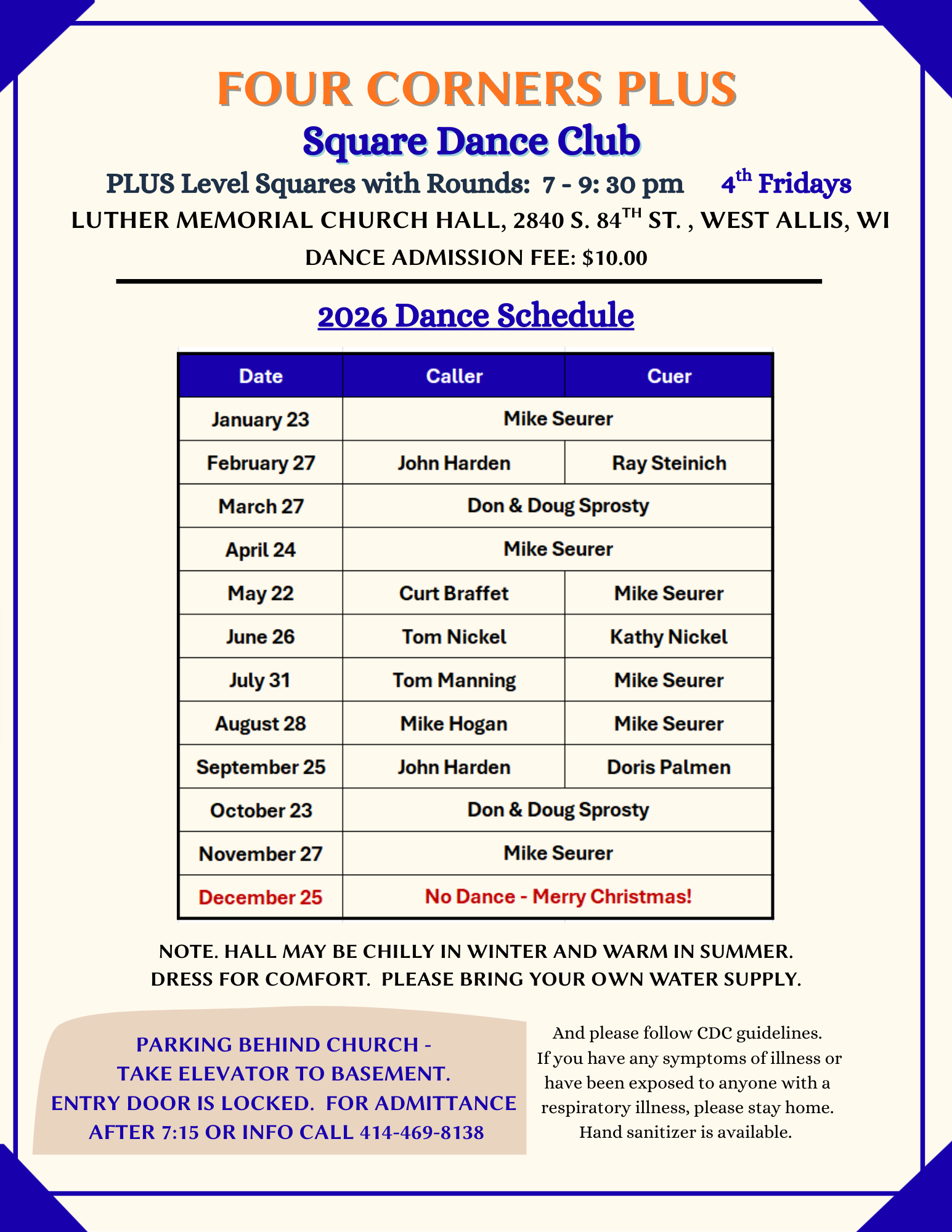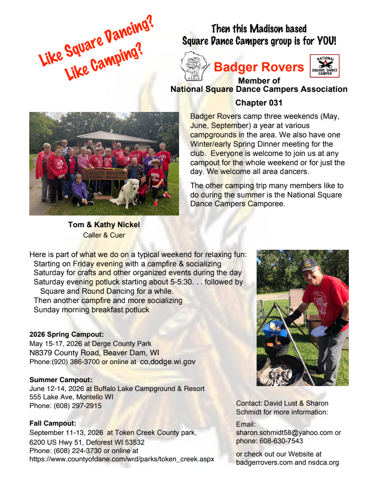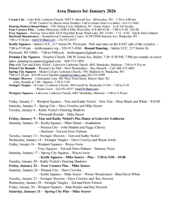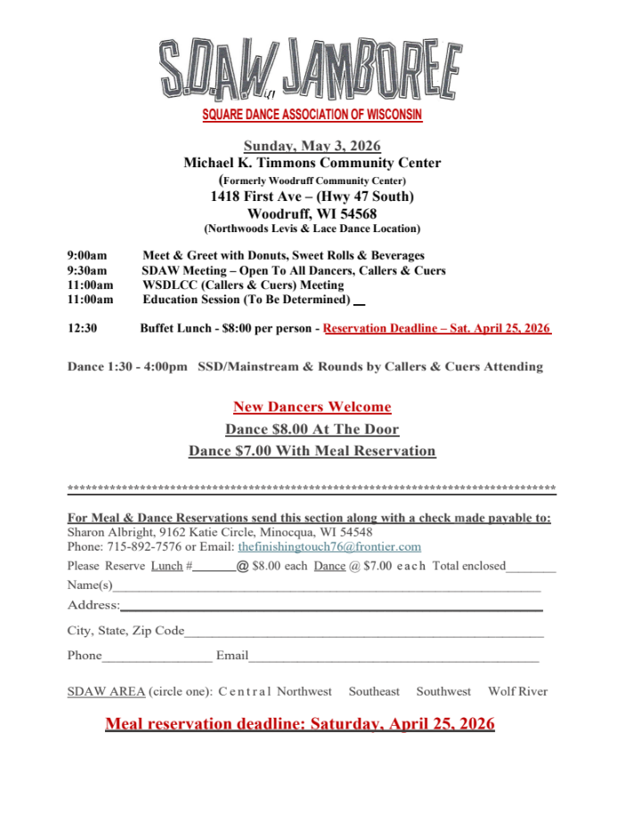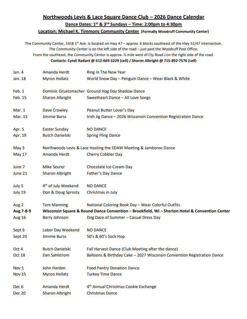 Sign up for the WI Square Dance Flyer/Information Email List. Receive current flyers and information from local clubs regarding their dances.